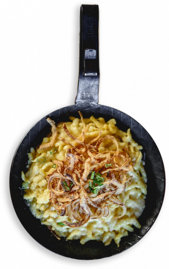 Appenzeller/ Emmentaler/ Gruyère/ refined with white wine and cherry brandy/ optionally with alpine potatoes & bread or a large portion of bread (A, G, L, 2, 5, 6)